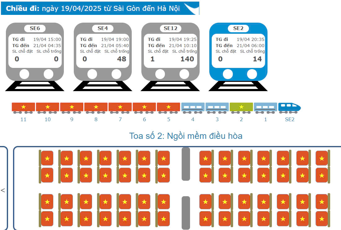 Từ nay đến hết kỳ nghỉ lễ, mỗi vé tàu mua thành công sẽ hiển thị một lá cờ đỏ sao vàng trên hệ thống bán vé.